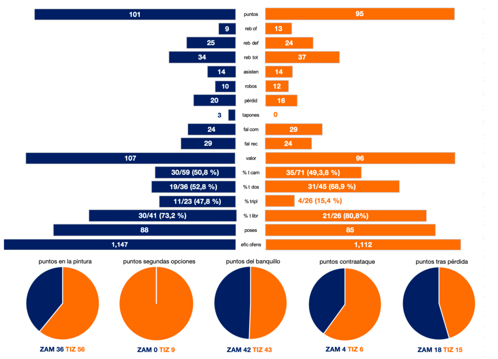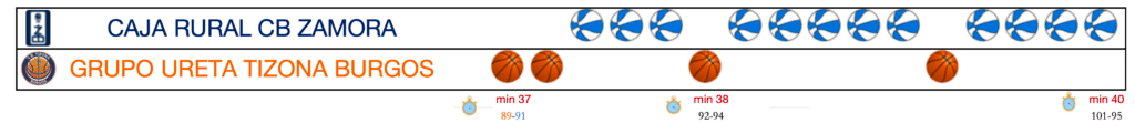 Las últimas acciones visitantes no veían aro y aunque provocaban faltas buscando el fallo desde el 4,60 local, los tiradores zamoranos estuvieron certeros desde la línea del tiro libre cerrando un complicado partido por 101-95, consiguiendo la segunda victoria de la temporada, lo que les mantiene en la parte alta de la clasificación de Primera FEB.
