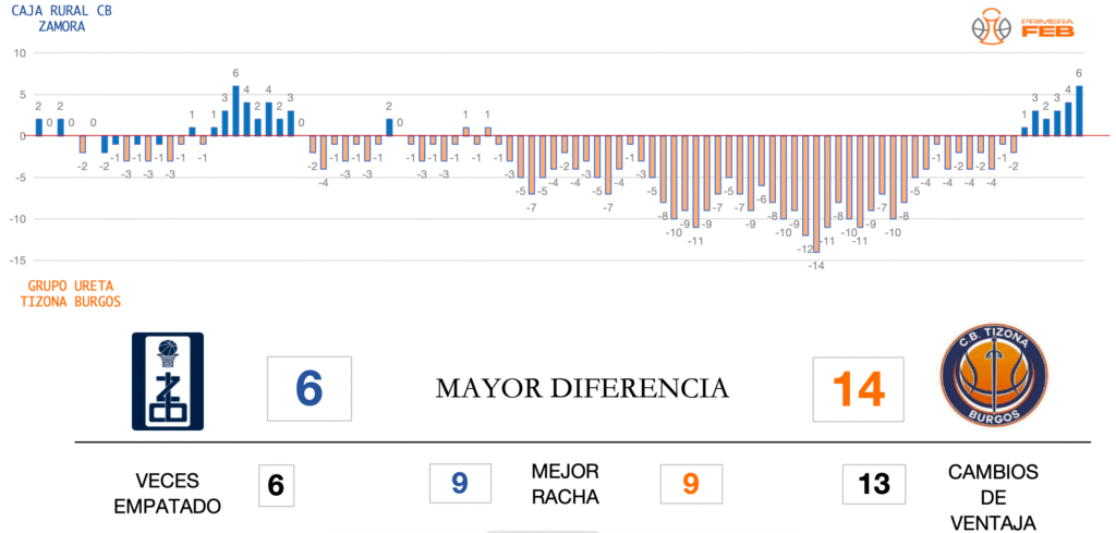 ▶️ El CB Zamora tenía un balance desfavorable con Tizona Burgos de 3 victorias y 7 derrotas, el partido de esta jornada es la cuarta victoria para los zamoranos entre ambas entidades.