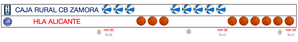 El último cuarto Josep Peris, Jacob Round y David Kristensen culminaban un parcial de 2-8 y se acercaban a cinco puntos (72-67), sería la última reacción zamorana, ya que HLA Alicante ponía tierra de por medio y conseguía su máxima ventaja a dos minutos del final.