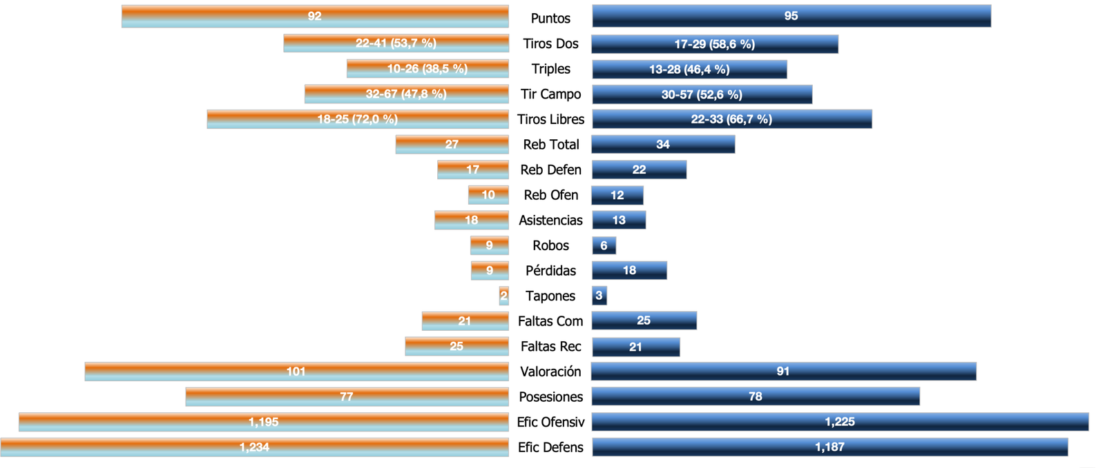 PALMER BASKET MALLORCA PALMA (23+22+29+18) 92: Philip Scrubb (26), Duda Sanadze (15), Ander Urdiain (6), Nuno de Sá (7), Archange Izaw (10) -quinteto inicial- Hansel Atencia (10), Golden Dike (4), Jesús Carralero (7), Joan Feliu (3) y Joshua Roberts (4). Entrenador Juan Ignacio Diez de Acharán.