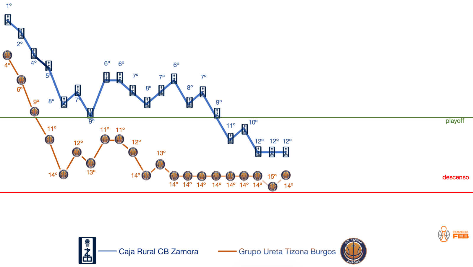 El balance en Primera FEB es de 9 victorias y 11 derrotas en 20 partidos disputados