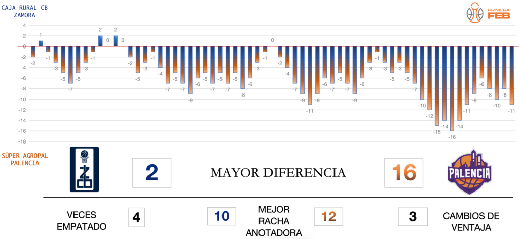 El equipo de Saulo Hernández firma un buen partido, pero no puede rematar su trabajo cayendo en Palencia. El inicio del choque fue de gran igualdad, tras una pequeña ventaja local, Caja Rural CB Zamora remontaba y se ponía dos arriba gracias a un triple de Colby Rogers (10-12). Tras un intercambio de canastas se llegaba igualado al último minuto del cuarto (19-18), aunque un dos más uno dejaba en cuatro la brecha de los primeros diez minutos (22-18).