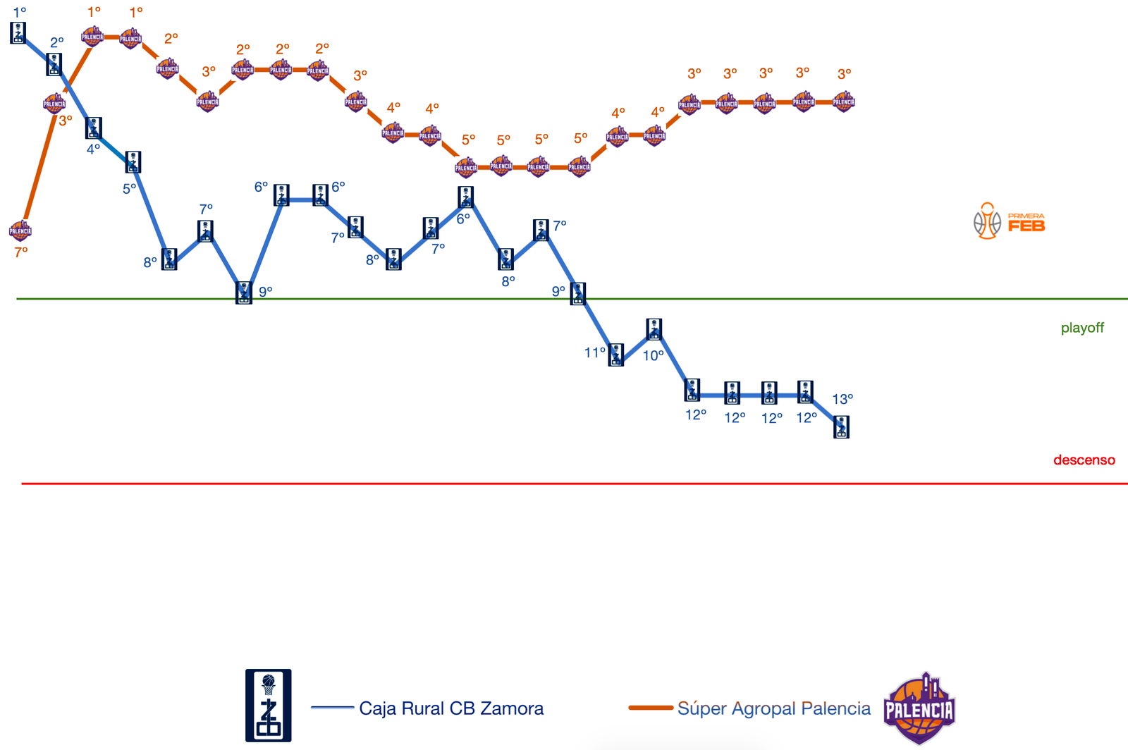 El balance en Primera FEB es de 9 victorias y 13 derrotas en 22 partidos disputados