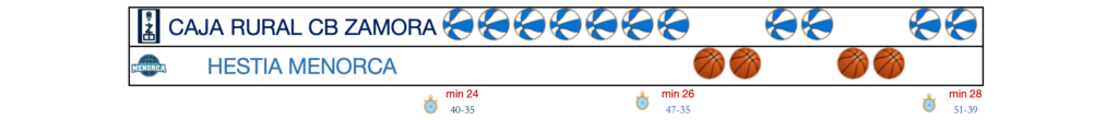 Minuto 24 al 26 del partido entre Caja Rural CB Zamora 72 馃啔 Hestia Menorca 67 (21/03/2026)