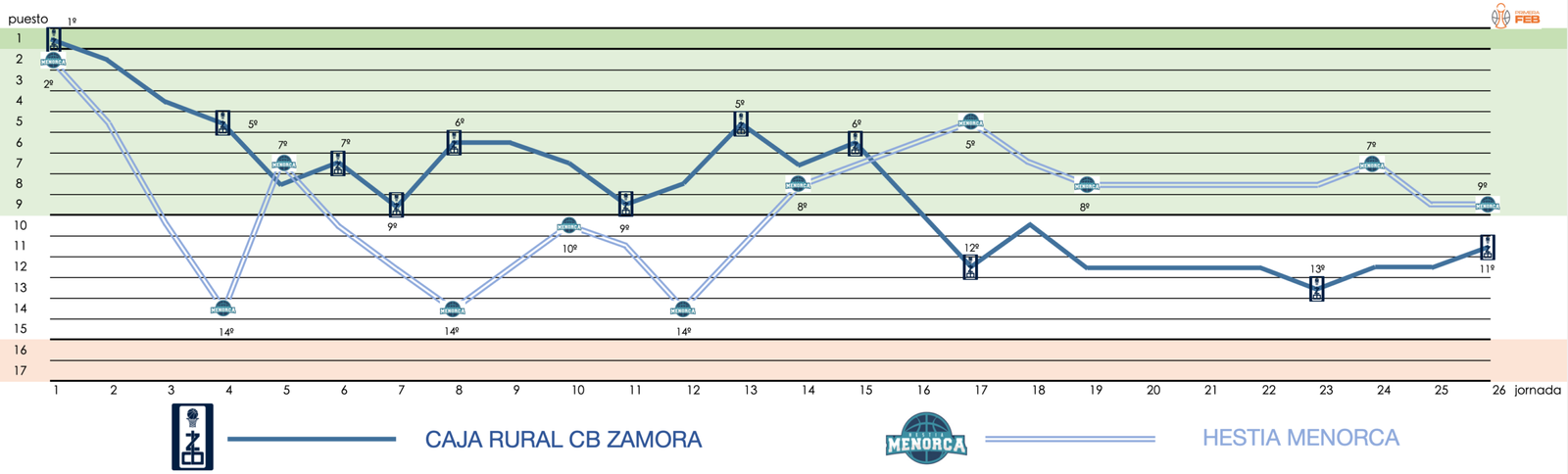 Clasificaci贸n Caja Rural CB Zamora y Hestia Menorca las veintis茅is primeras jornadas de la Primera FEB