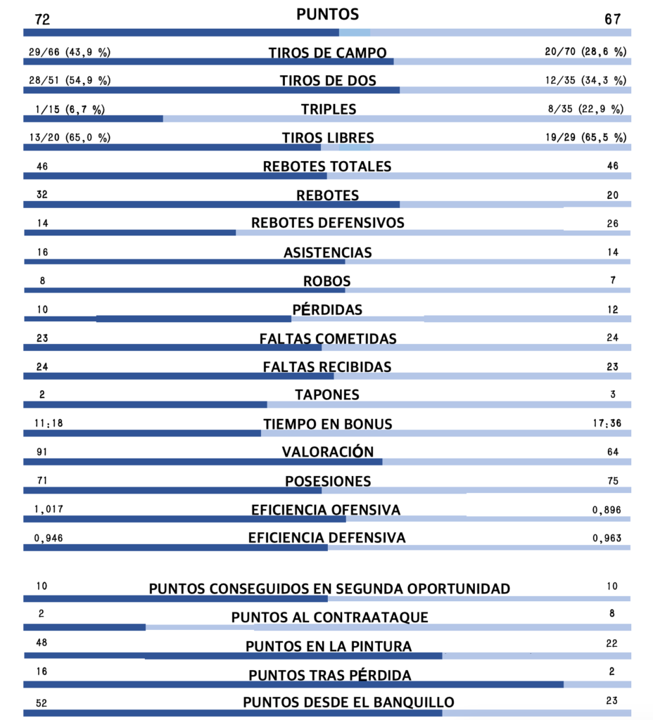 Estad铆sticas generales Caja Rural CB Zamora 72 馃啔 Hestia Menorca 67 (21/03/2026)
