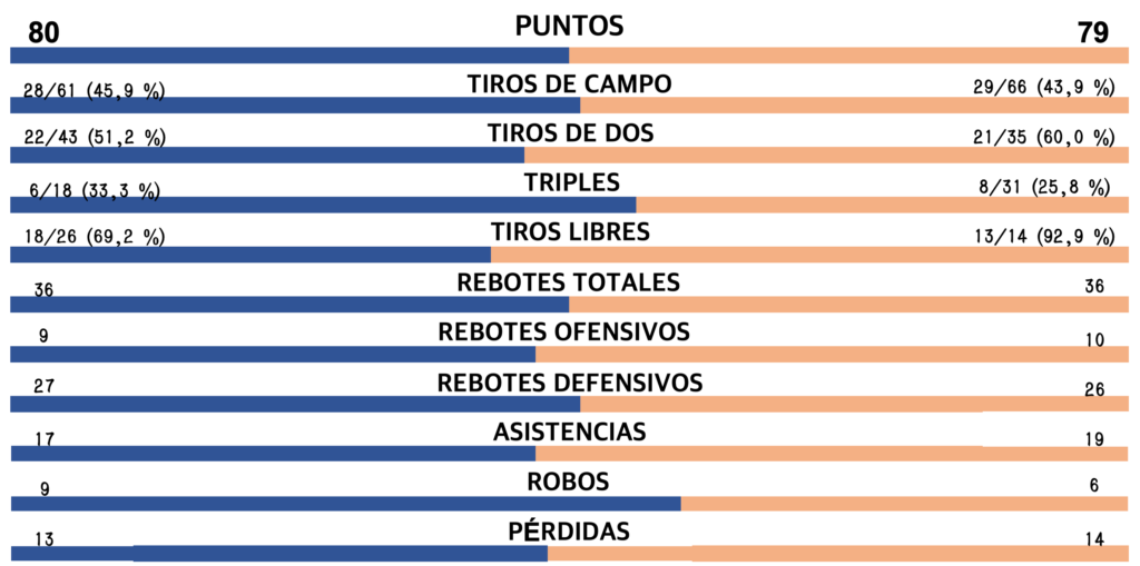 Con dos abajo y a falta de 6 segundos Ty Roberts consigue la canasta ganadora con un triple (80-79)