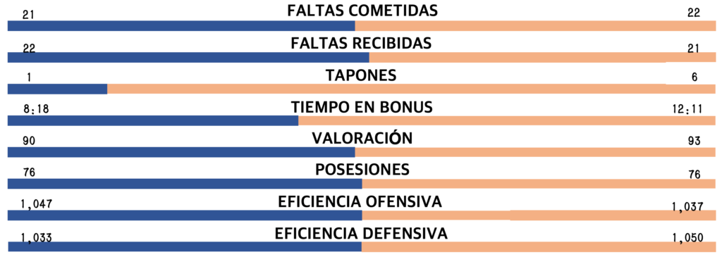 24:26 minutos, 13 puntos, 6 rebotes, 1 asistencia, 5 faltas recibidas y 15 de valoración