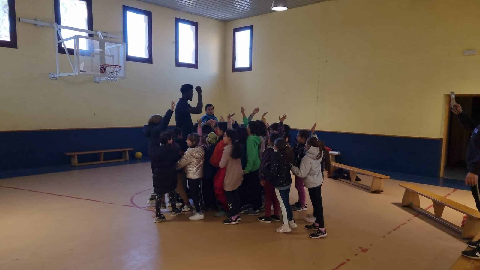 Los alumnos y alumnas del centro, tras haber hablado un rato con el jugador, pudieron disfrutar también de partidos y juegos de baloncesto.